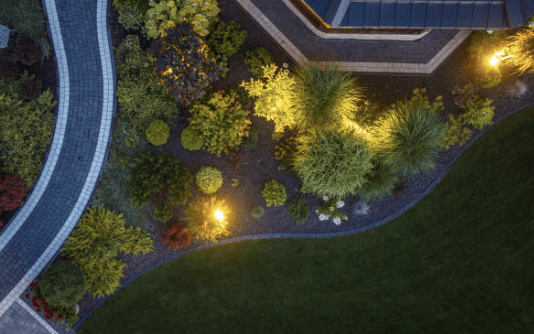 Planting & lighting plans to add softness, privacy, and evening atmosphere